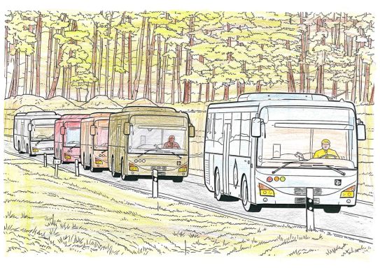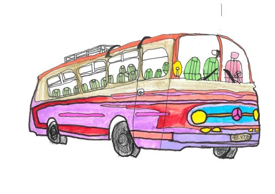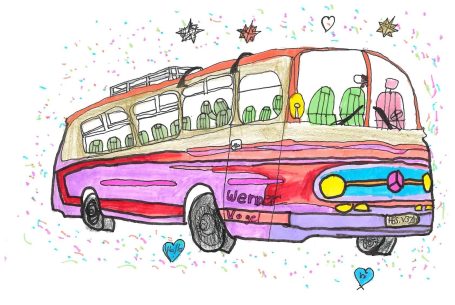 Selbstgemalte Kunstwerke, die unsere Busse zeigen